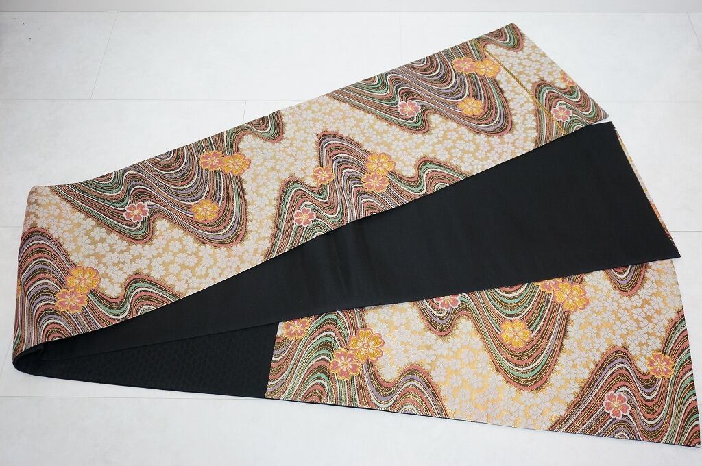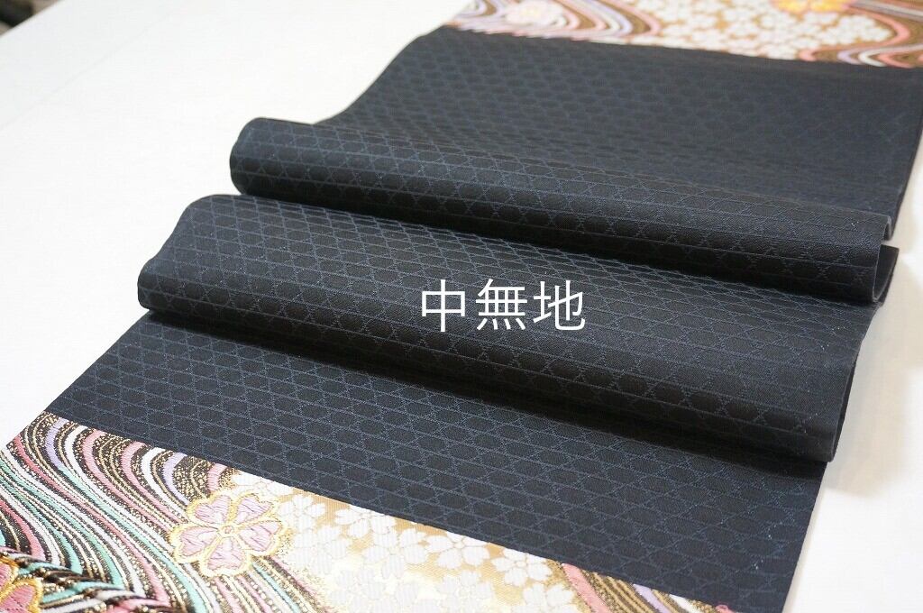 唐織り 桜 流水 袋帯 正絹 金糸 金箔 ゴールド 白 ピンク 黒 286