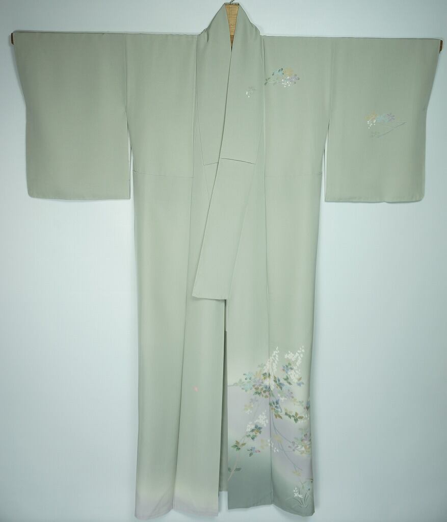 未使用 作家物 手描き友禅 訪問着 花柄 正絹 白緑 黄緑 紫 661