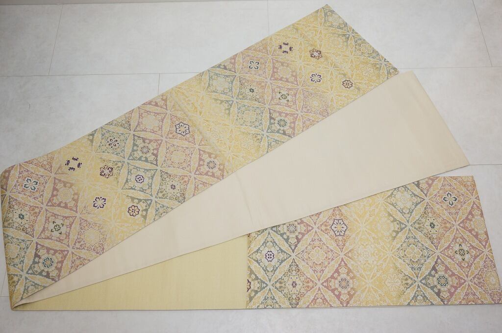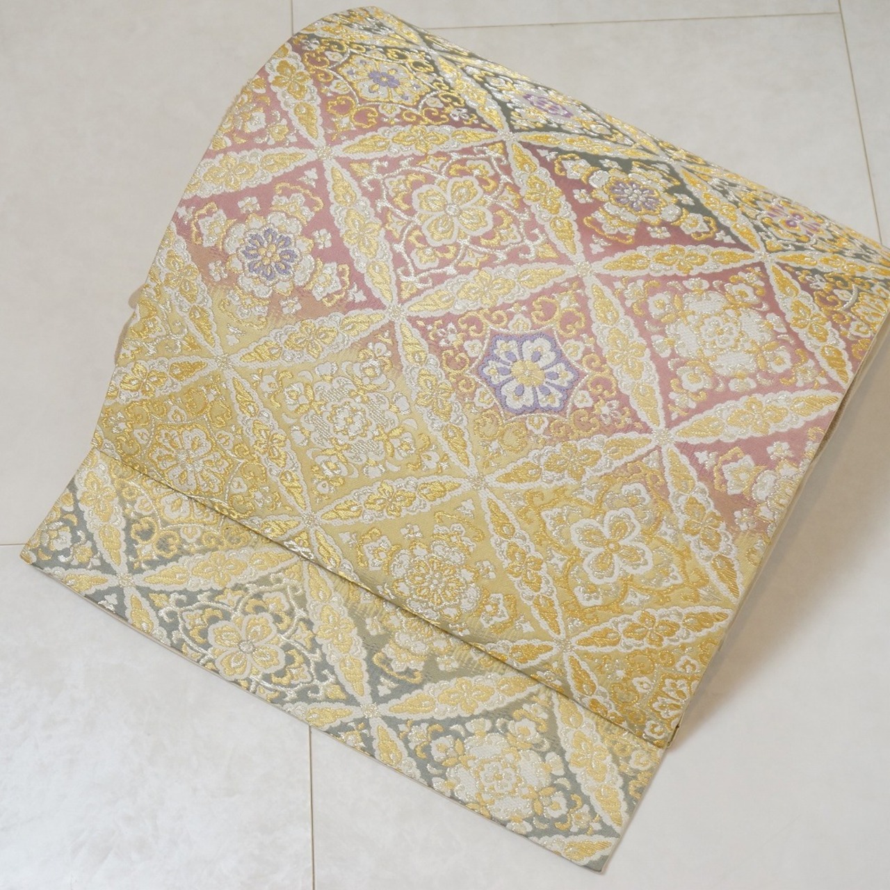 皇帝貝紫 西陣織 唐織り袋帯 金糸 ベージュ ピンク 緑 紫 320