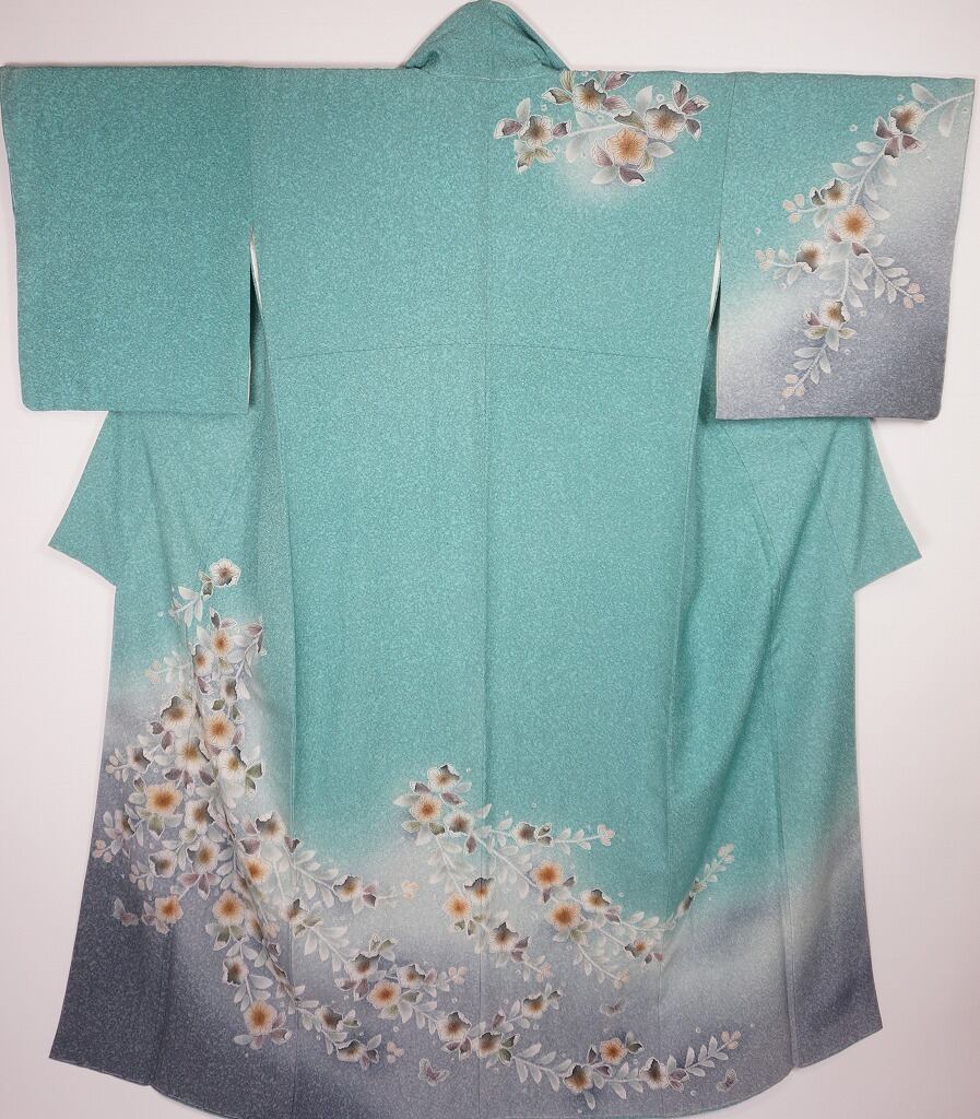 未使用 辻が花絞り 蝋叩き染め 訪問着 正絹 青緑 ターコイズブルー 665