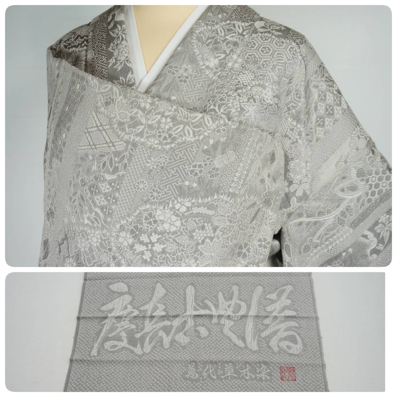 ◇大人の色気溢れるモノトーンの色使いの、とてもエレガントで気品高い「御召」の高級なお着物です。