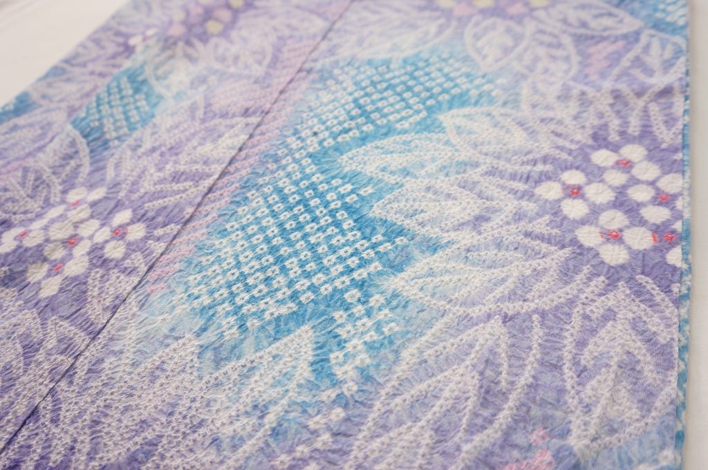 有松絞り【浴衣】紫陽花 綿 総絞り 紫 水色 白 パステルカラー 031