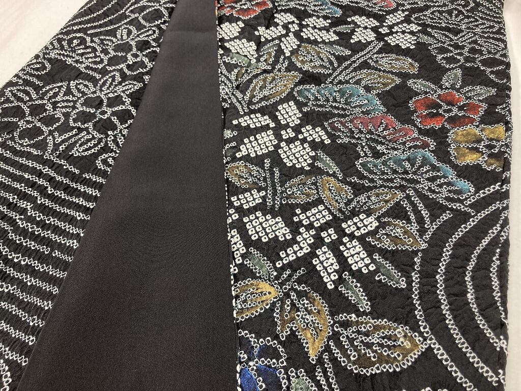 未使用 総絞り 訪問着 京鹿の子絞り 花柄 正絹 黒 白 赤 青 黄 747