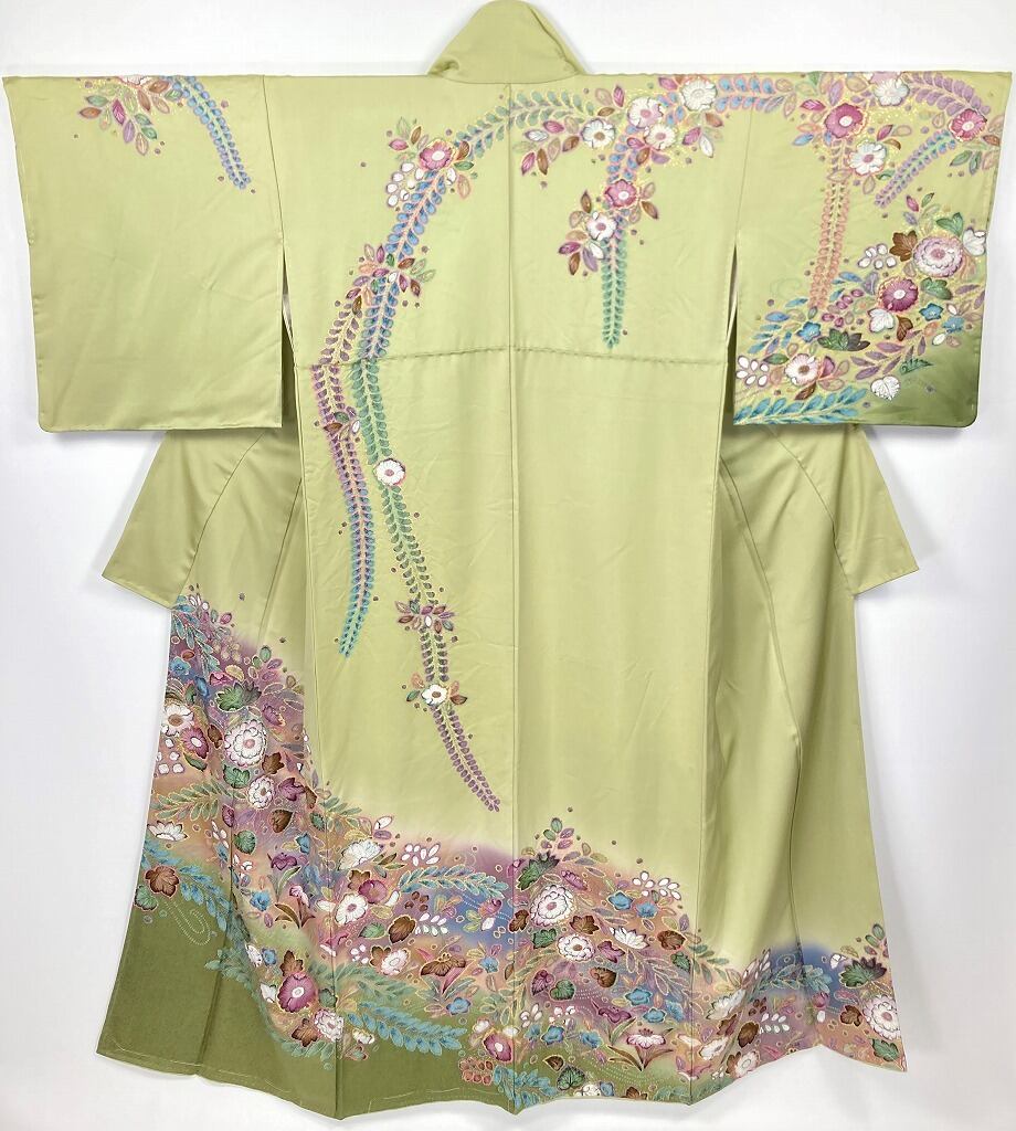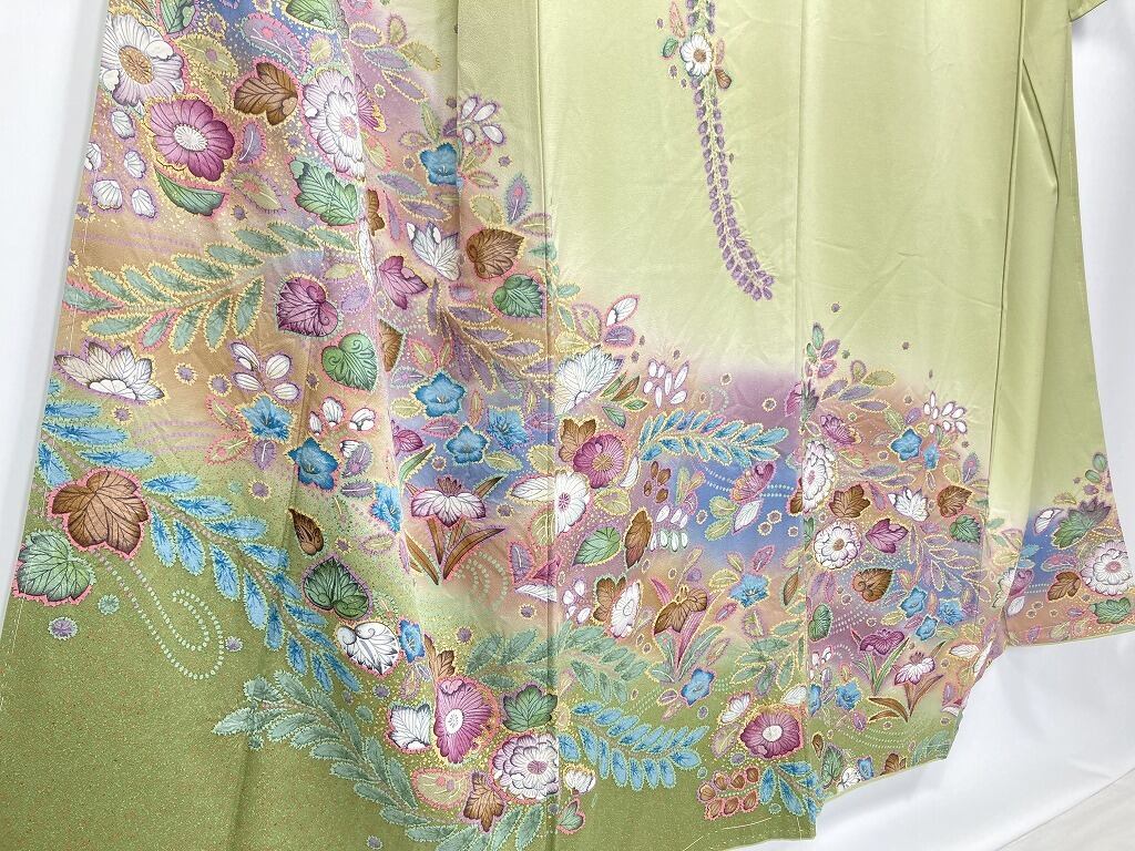 ◇上品な黄緑に紫やブルーのコントラストが目を惹く、とても艶やかな訪問着です。