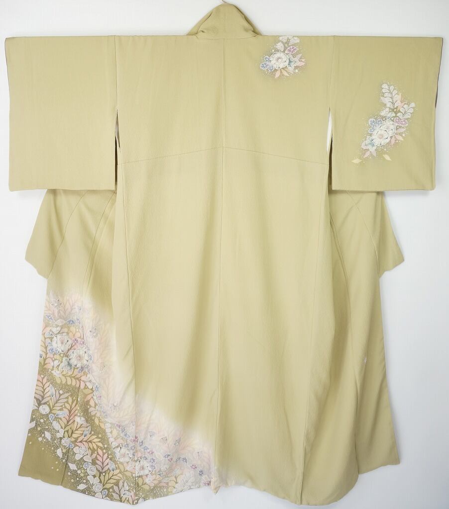 翠山工房 辻が花 絞り 訪問着 正絹 浜ちりめん 薄柳 黄緑 771