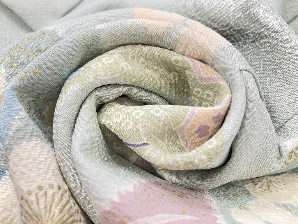 ■やわらかくしなやかで、重みのある上質な「正絹」地に、風合いの良い凹凸を丹念に織り出し、奥行きや立体感が生まれております。