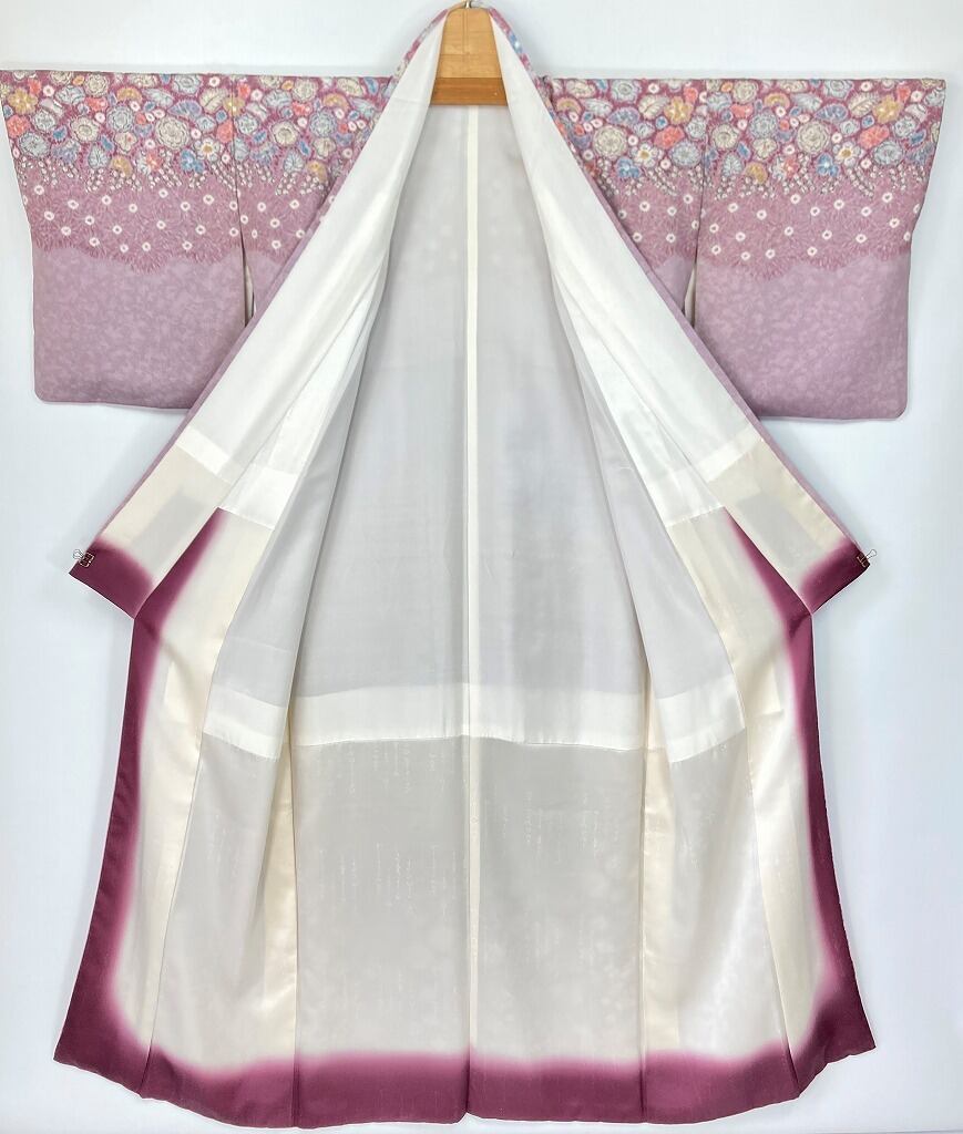 銀通し 辻が花 絞り 訪問着 正絹 紅藤 紫色 797