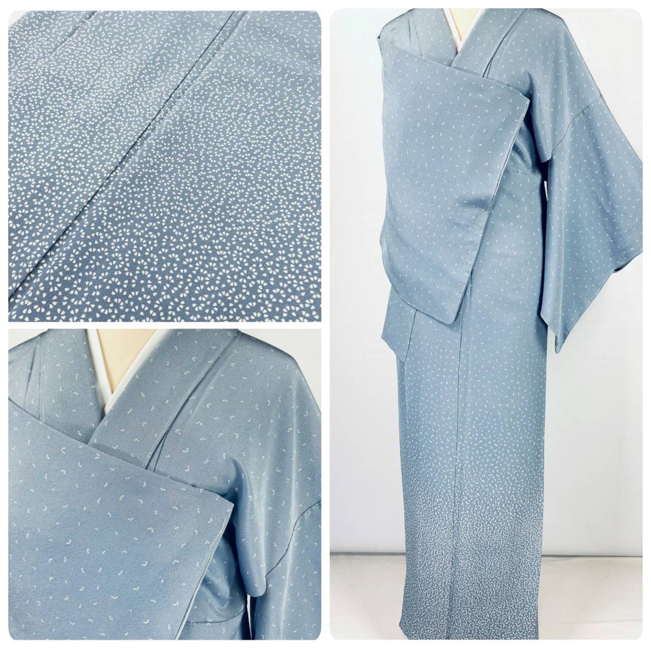 きめ細かく繊細な型紙で、可愛らしい[桜のはなびら]を間隔良くあしらい、裾に向かって少しずつ大きくし間隔を狭めることにより、美しいグラデーションのように配された、意匠美のとても粋な作品です。