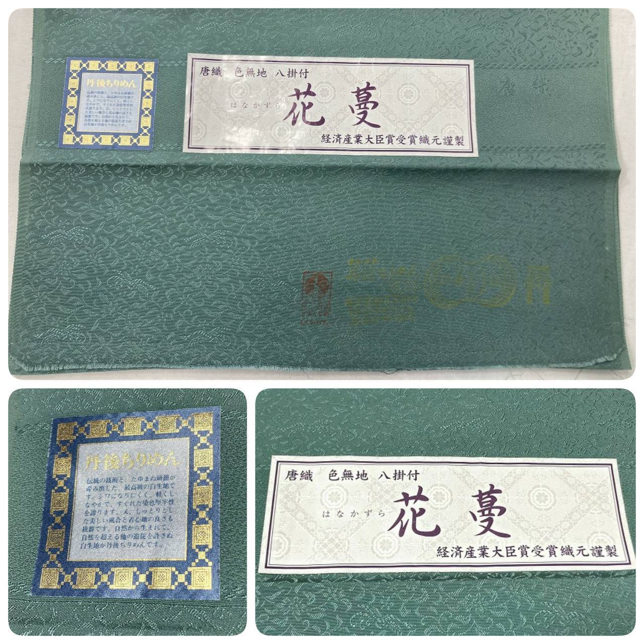 未使用 唐織り 色無地 花蔓 紋意匠 色無地 正絹 紋なし 青緑 814