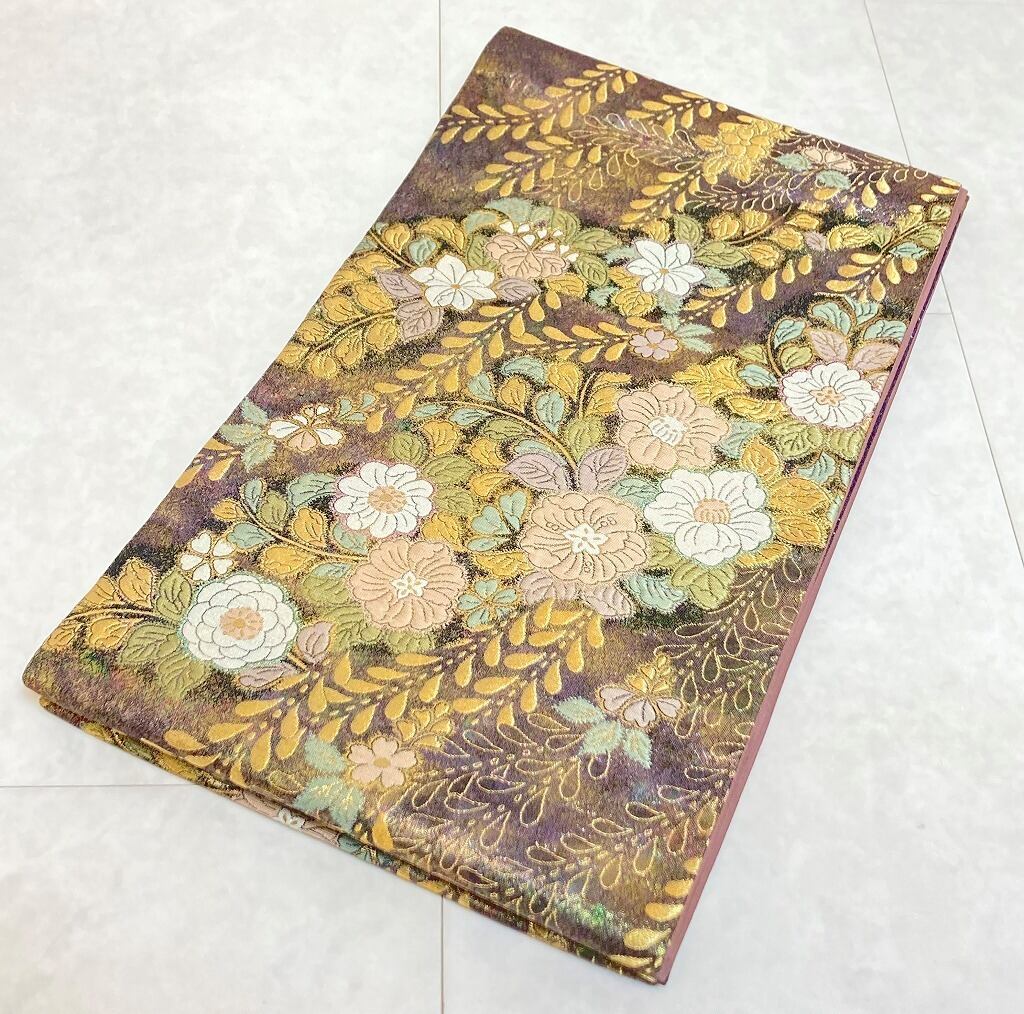 ◇深くシックな紫に美しく輝くゴールドが映える、とても素敵な袋帯です。
