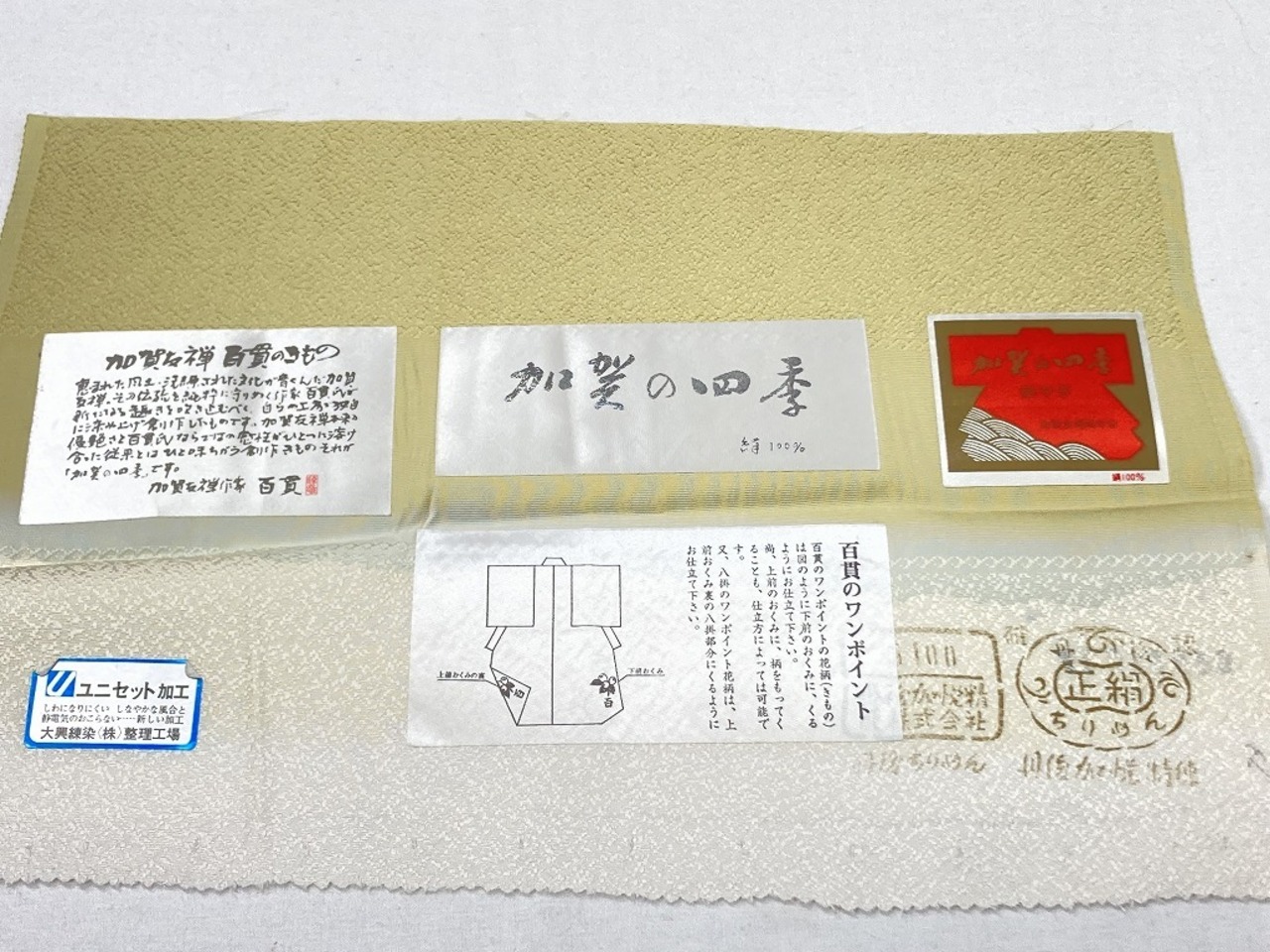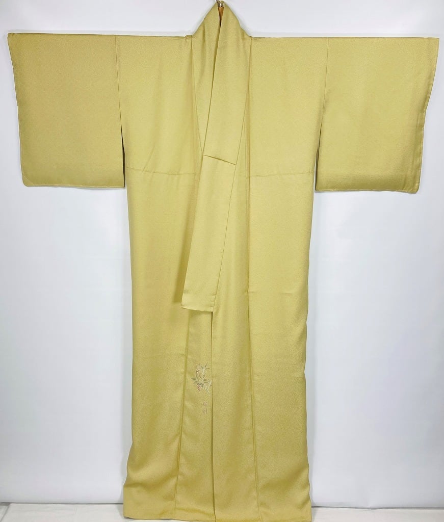 加賀友禅 百貫達雄 紋意匠 色無地 正絹 一つ紋 女郎花 黄色 838