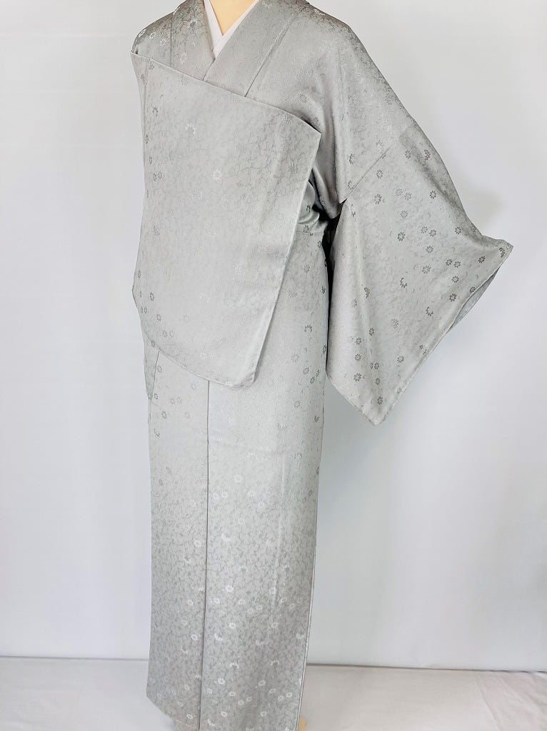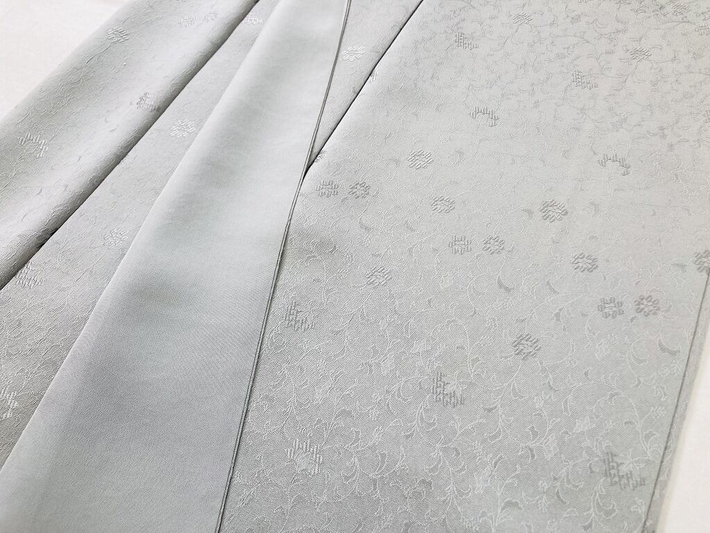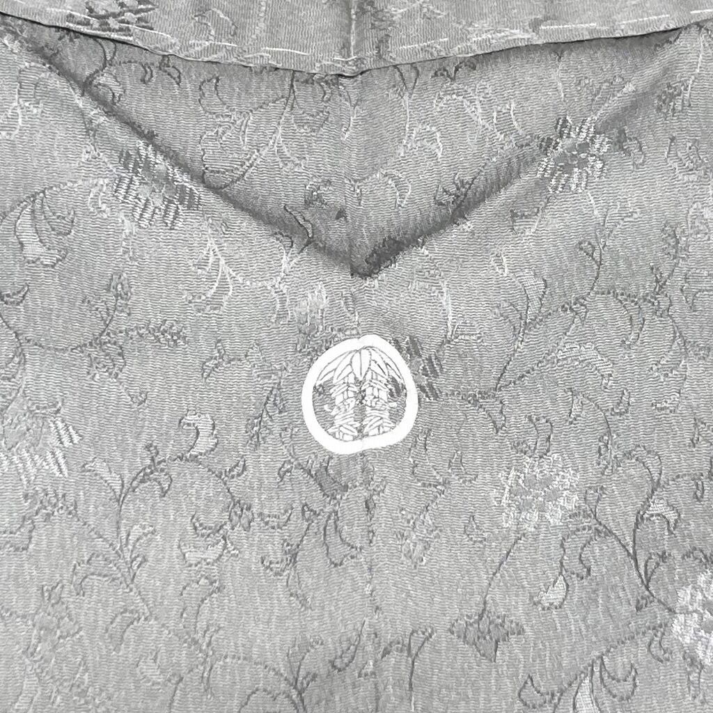 未使用 紋意匠 色無地 唐花 正絹 一つ紋 白銅色 グレー 819