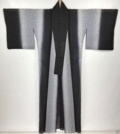【夏】紋紗 美品 唐花 縦縞 小紋 正絹 黒 グレー 911