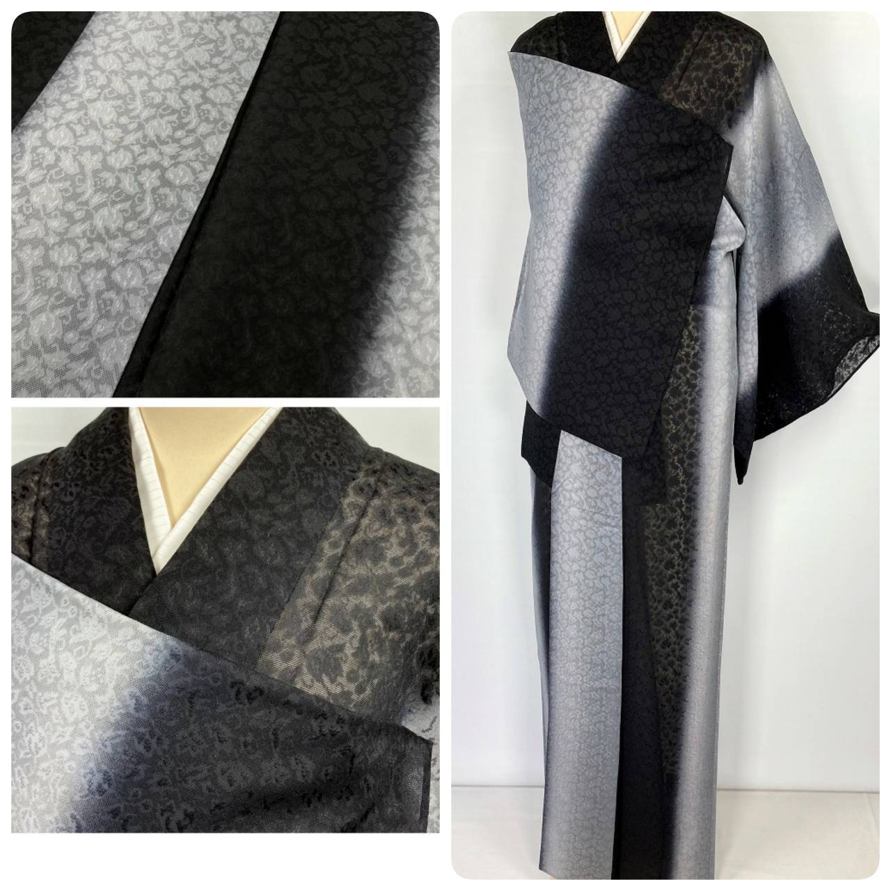 ◇大人の色気溢れるモノトーンの色使いで、優雅な唐花の紋紗が華やぎを添えた、格好良くエレガントなお着物です。