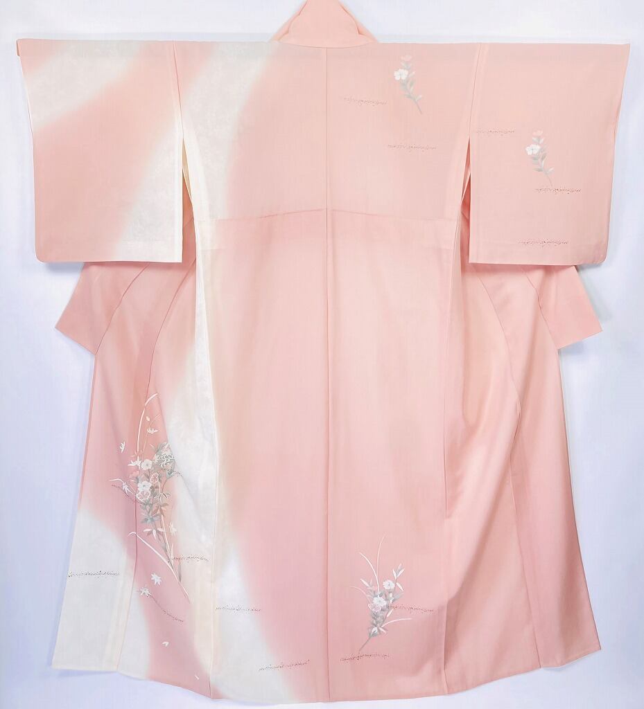 ◇女性らしさを引き立たせる優しい色使いで、やわらかな白とピンクの染め分けが美しい、すっきりとして品の良い柄行の、はんなりとしたとても嫋やかな訪問着です。