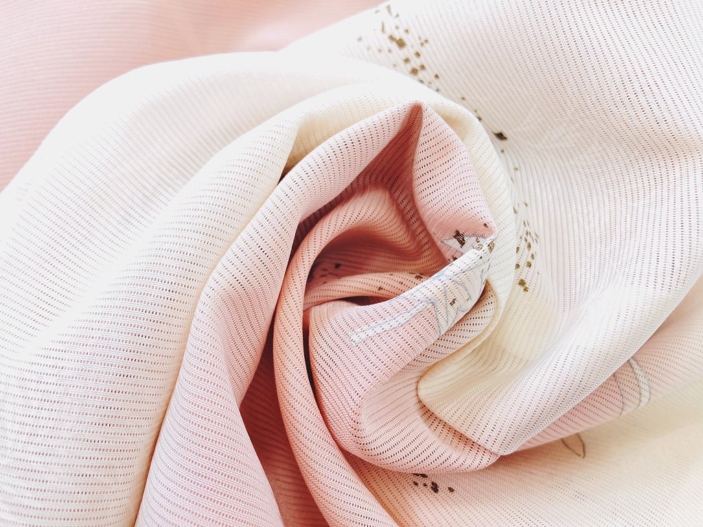 ほんのりと紫がかった黄みをふくんだ淡いピンクの「乙女色」(伝統色のいろは) のうな、やわらかく優しい地色です。