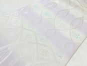 ◇清楚な白と淡いパステルカラーの紫に銀糸が映える、中世ヨーロッパの雰囲気漂うとてもエレガンスな「絽」の名古屋帯です。