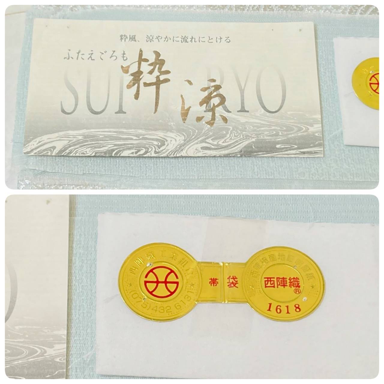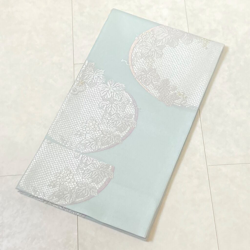 新品【夏帯】西陣織 袋帯 紗 葡萄 正絹 銀糸 水色 紫 白 パステル 466