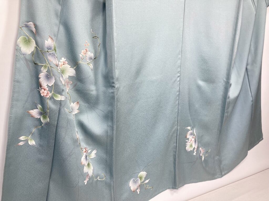 ◇残暑に映える涼し気な色合いに、秋にピッタリな葡萄をあしらった、すっきりとして品の良い付下げ訪問着です。