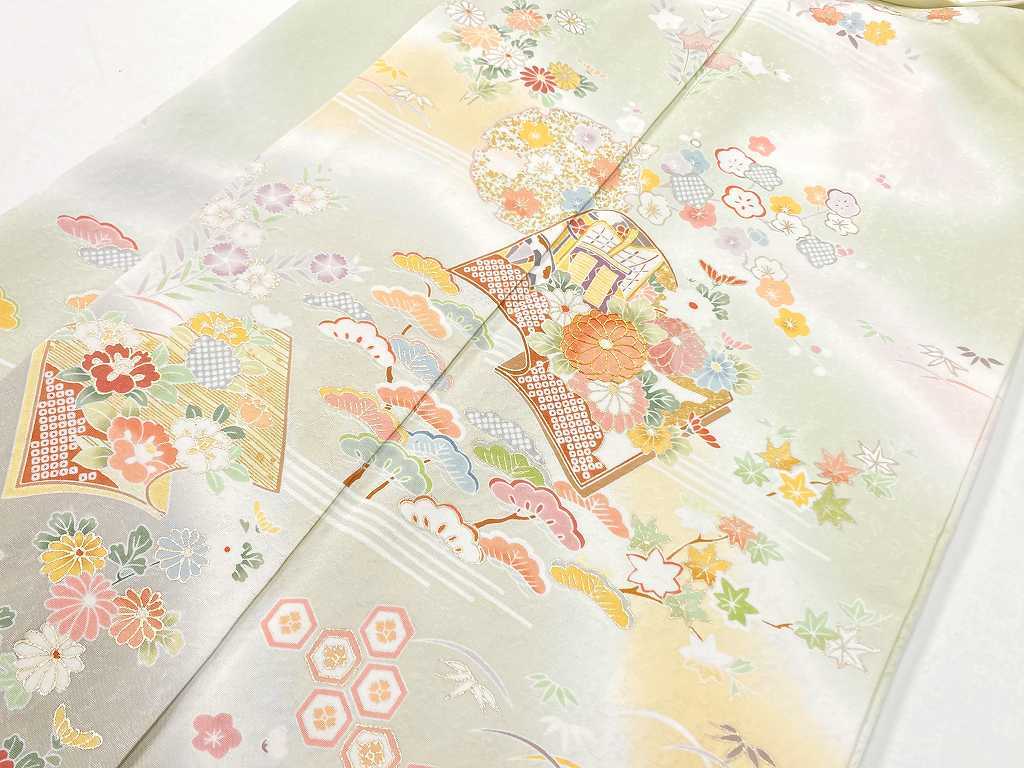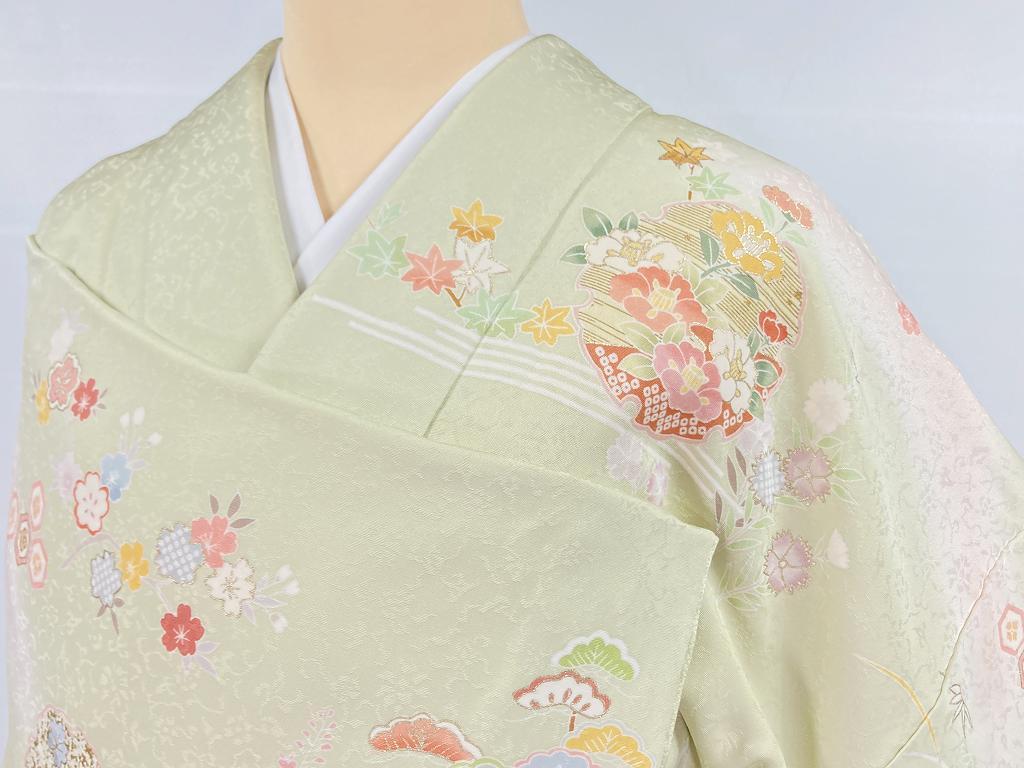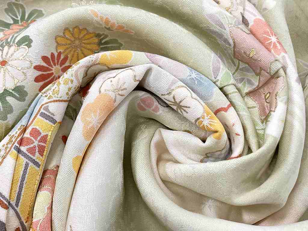 京友禅 金駒刺繍 花柄 訪問着 正絹 黄緑 ピンク 水色 黄色 パステル 968