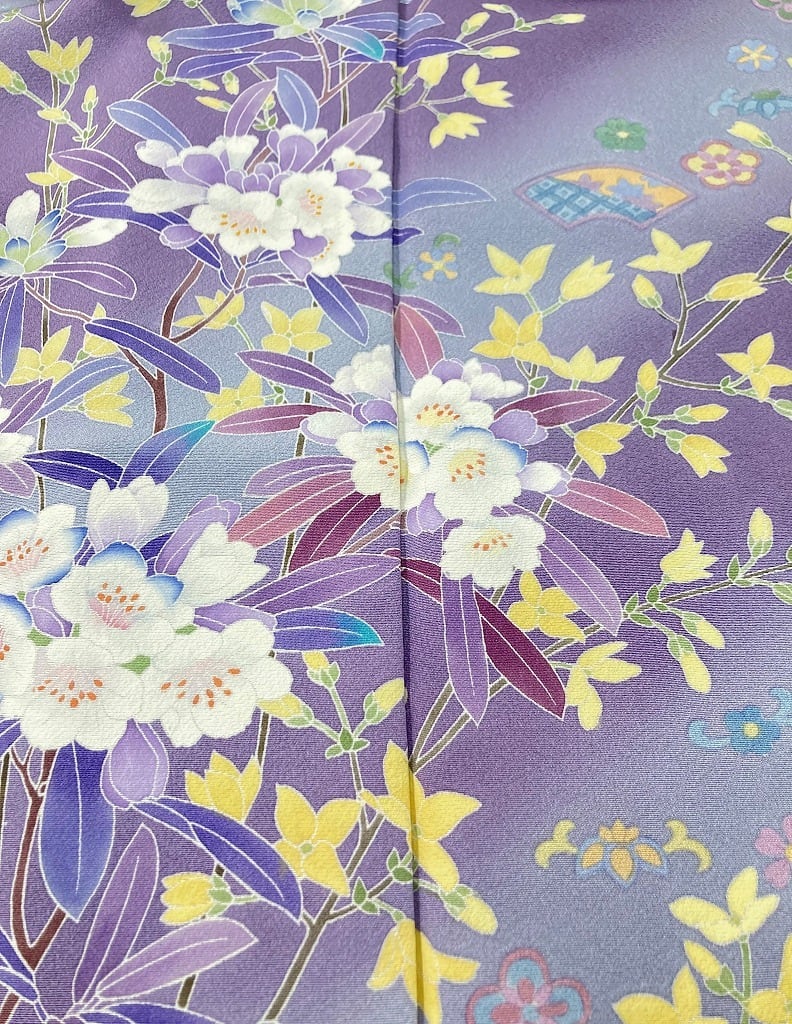 葵の花のような灰色がかった明るい紫の「葵色」あおいいろ (伝統色のいろは) のような、日本女性を引き立たせるとても高貴な地色です。