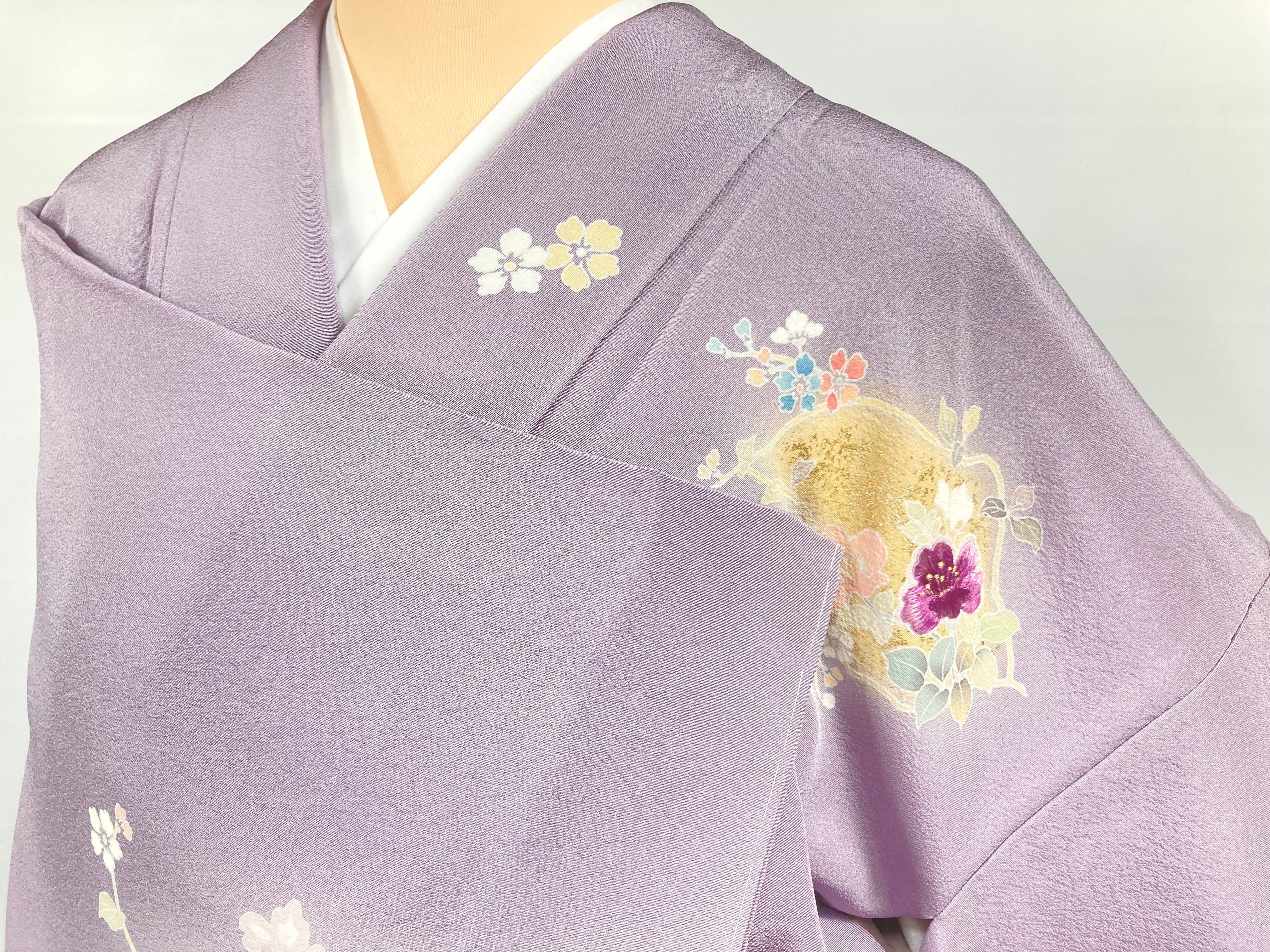 淡い青みのある紫の「藤色」(伝統色のいろは) のような、とても綺麗な地色です。
