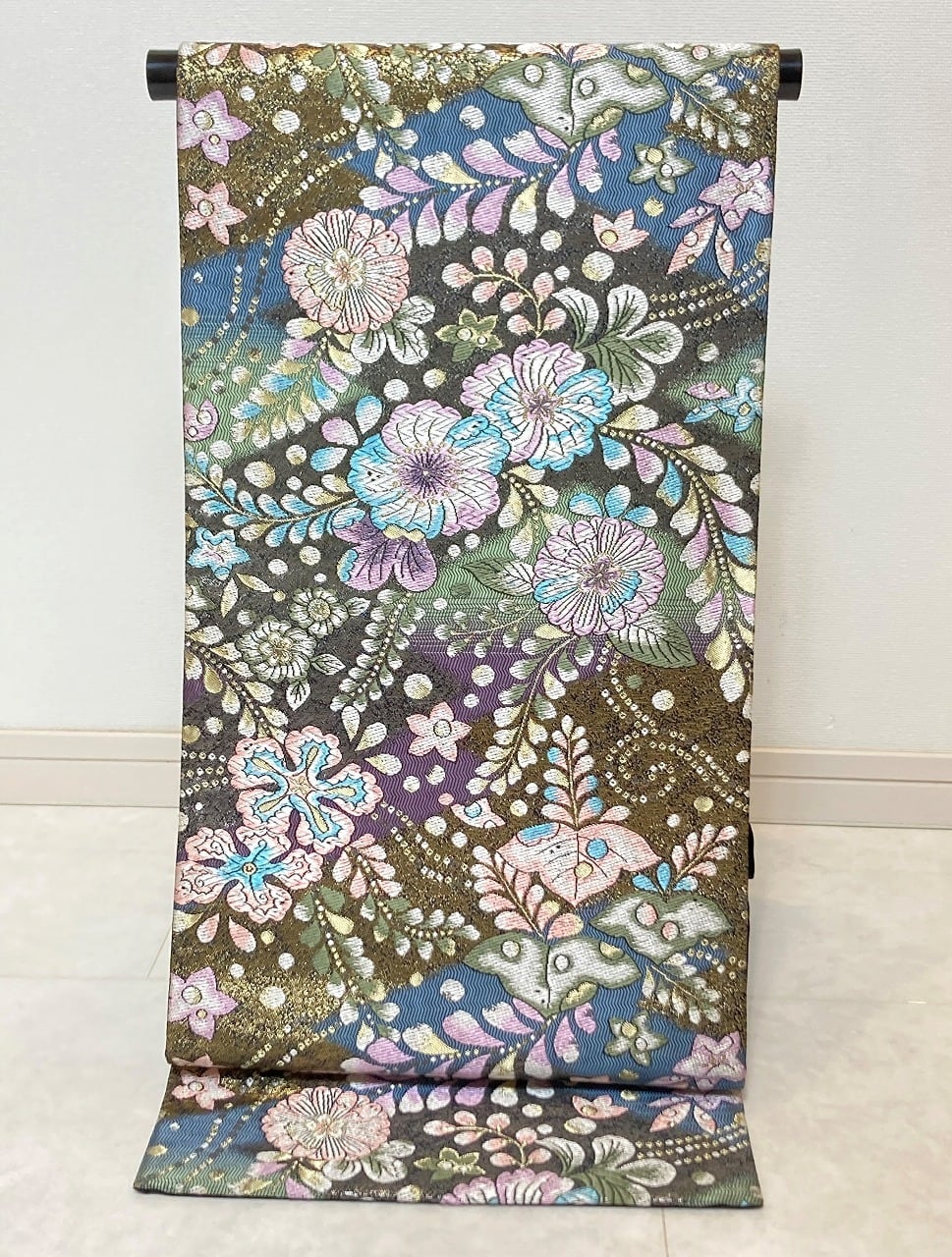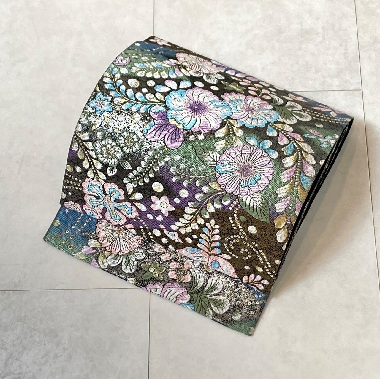 古代貝紫 辻ヶ花 袋帯 正絹 紫 緑 水色 パステルカラー 527