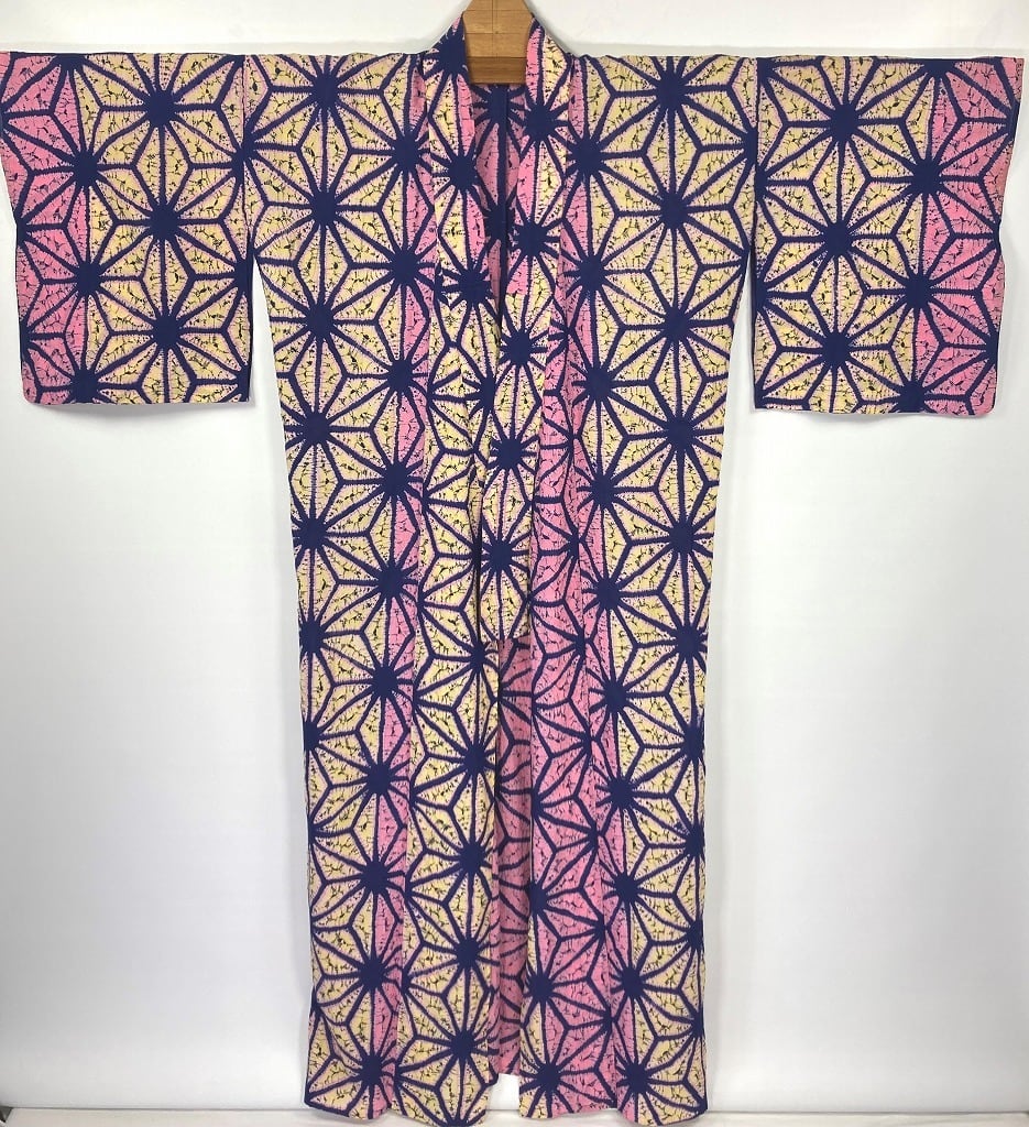 有松絞り【浴衣】希少色 麻の葉 綿 トールサイズ 有松鳴海絞り ピンク 黄色 紺 059