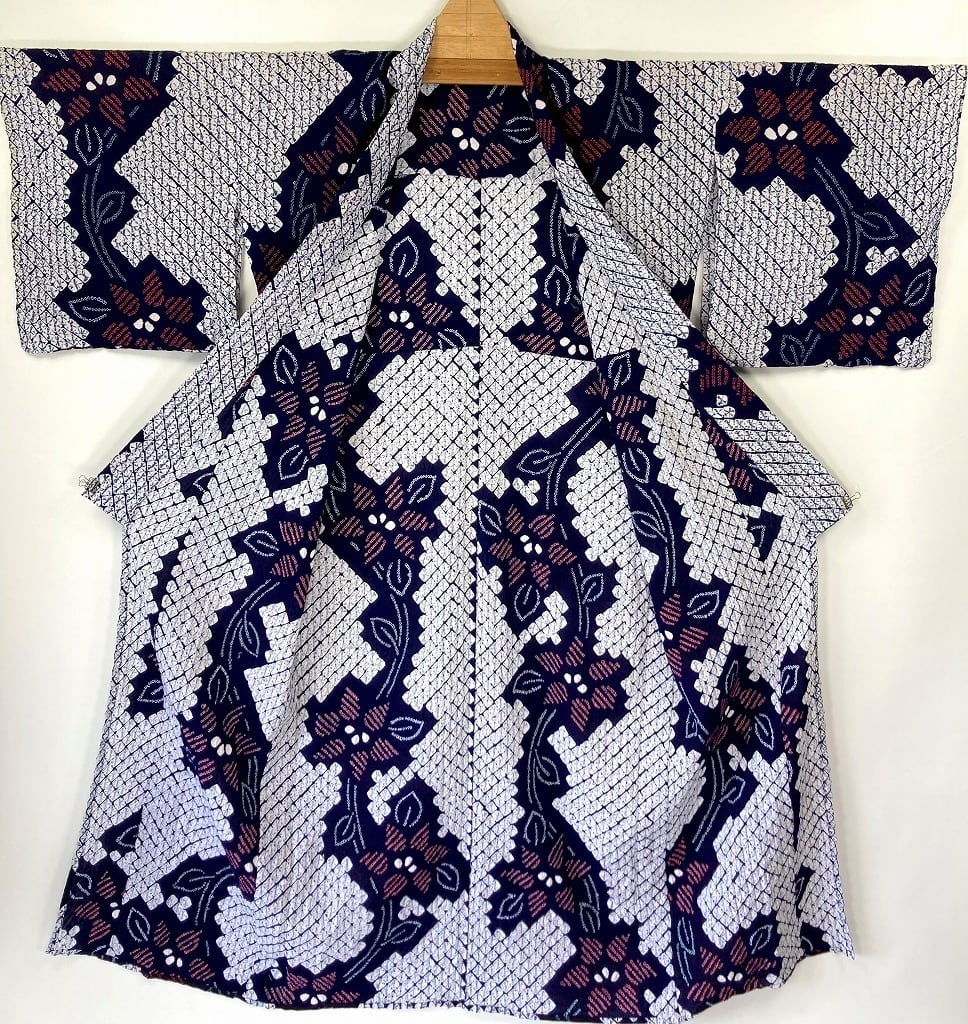 有松絞り【浴衣】鉄線 綿 有松鳴海絞り 総絞り 藍 紺 白 赤 紅 緑 065