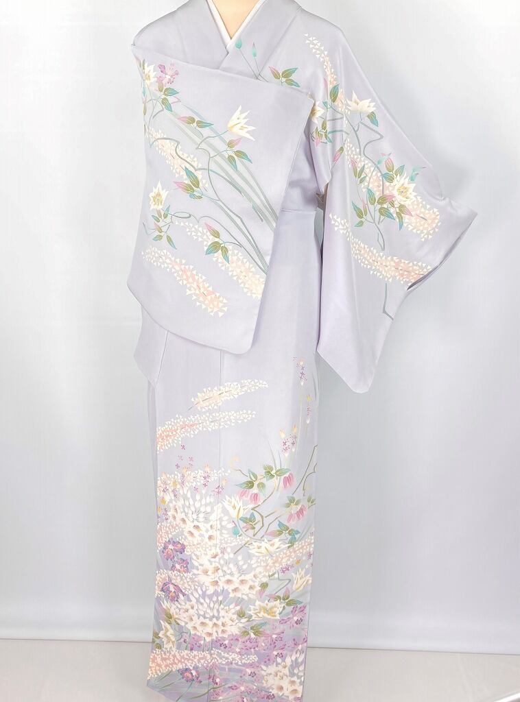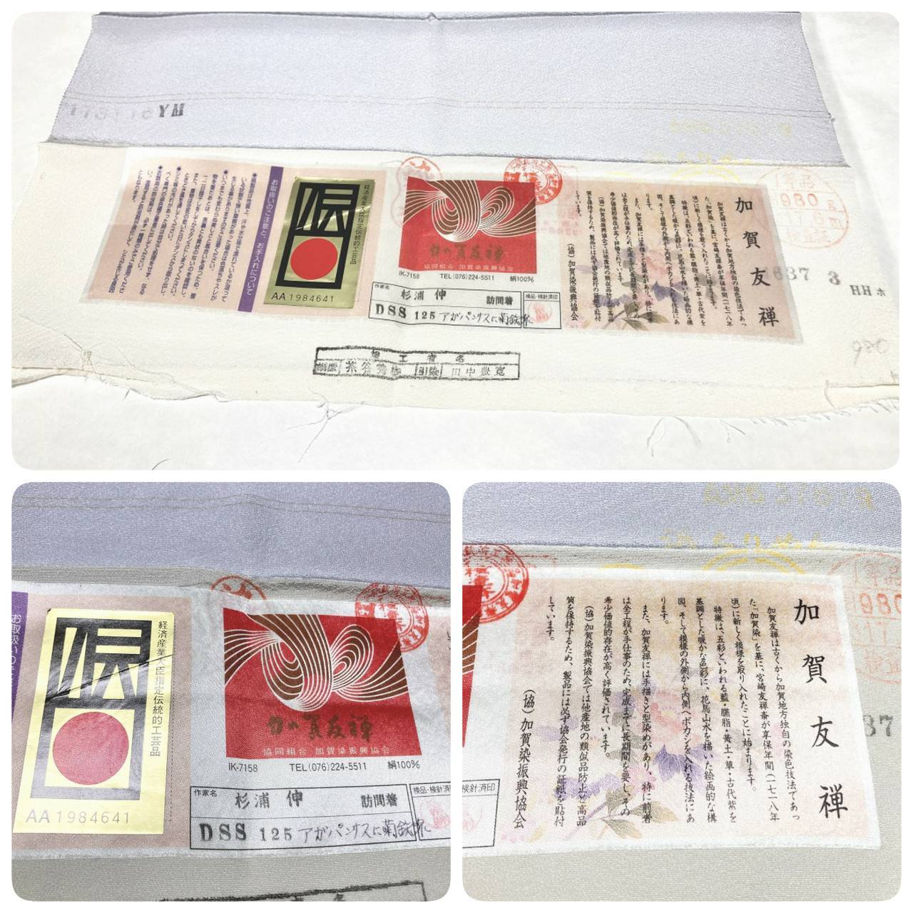本加賀友禅 杉浦伸 証紙付き 訪問着 花柄 正絹 紫 白 パステル 白菫色 1080