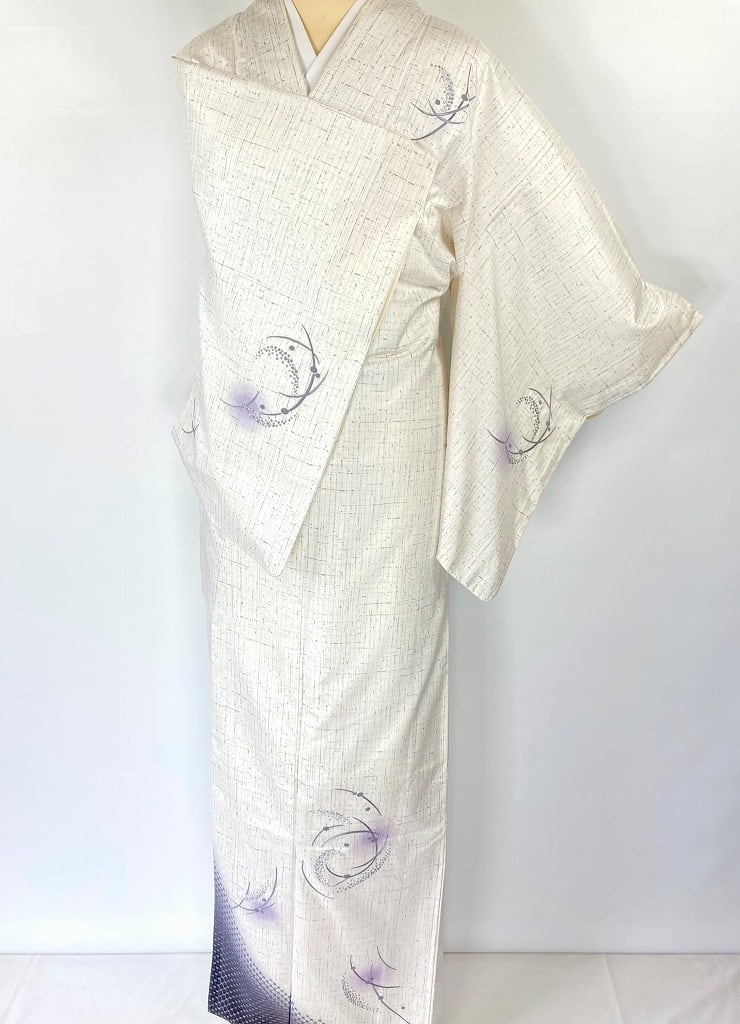 大島紬 汕頭 相良 蘇州 中国三大刺繍 白大島 訪問着 本場大島紬 正絹 白 紫 グレー 1108