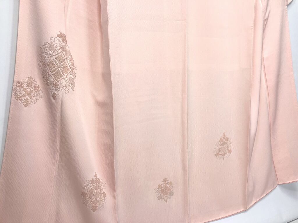 未使用 相良刺繍 華紋 一つ紋 総刺繍 付下げ 訪問着 正絹 ピンク 聴色 1134