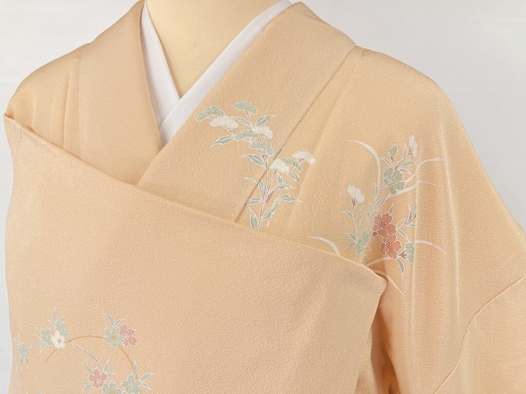 京友禅 本金箔 トールサイズ 扇 訪問着 正絹 肌色 オレンジ 1147