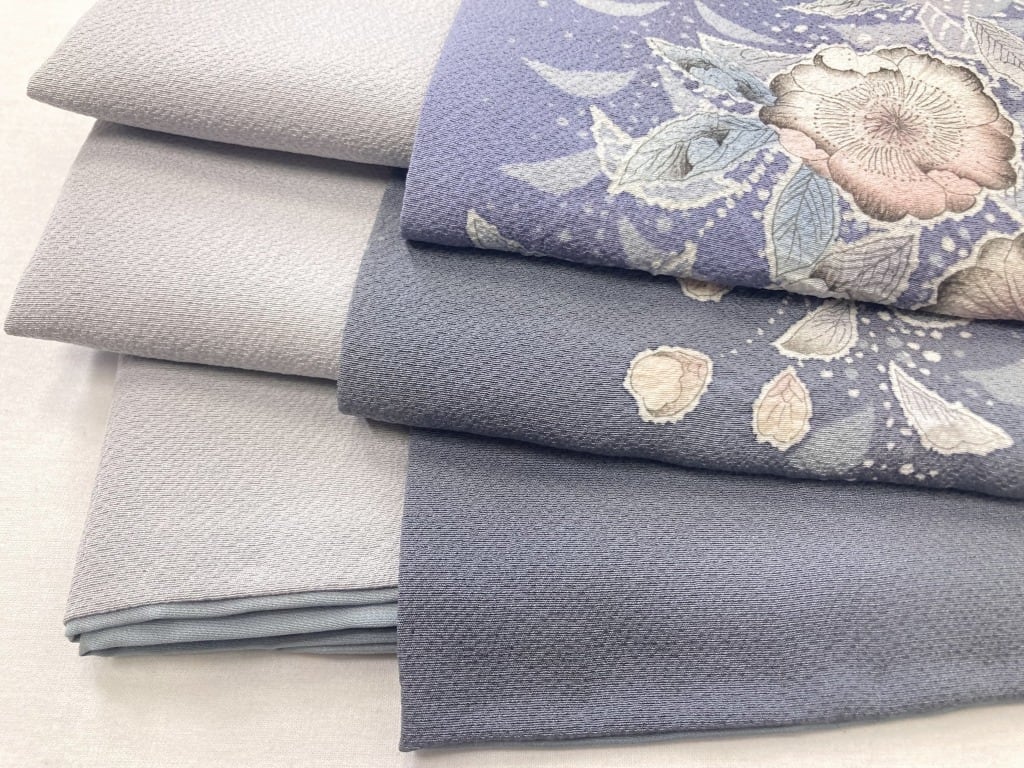 ほのかに紫がかった水色みのある明るいグレーのような、気品高い地色です。