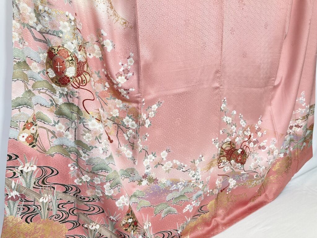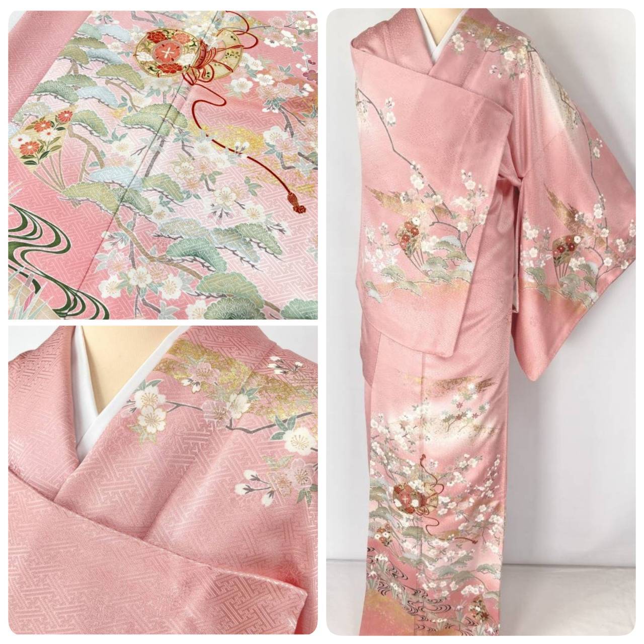 ◇可憐なピンク色地に、清楚な白の花々やゴールドが映える、雅やかな「京友禅」の訪問着です。
